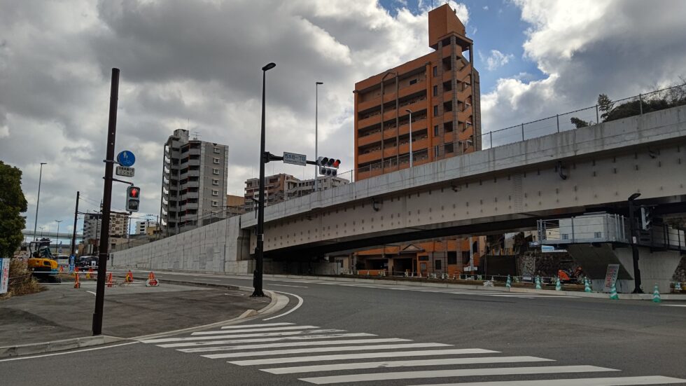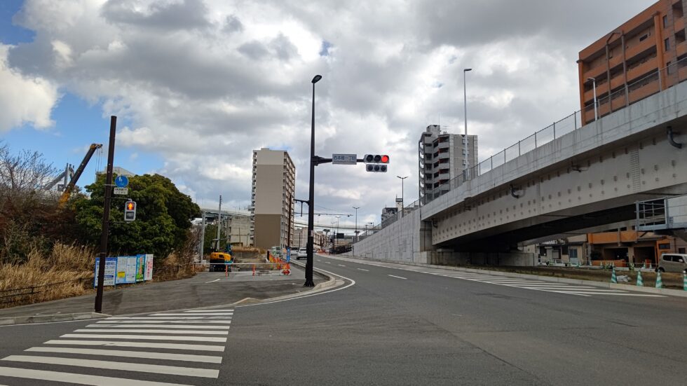 国道の渋滞緩和の対策として建てられる道路。 立体交差する道路は、照明や信号を桁下に施工する場合がある。