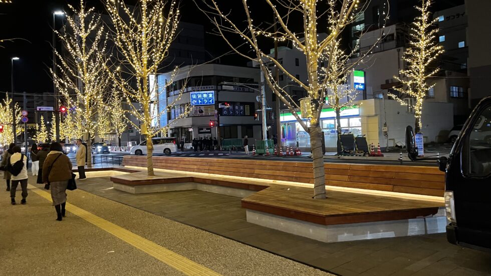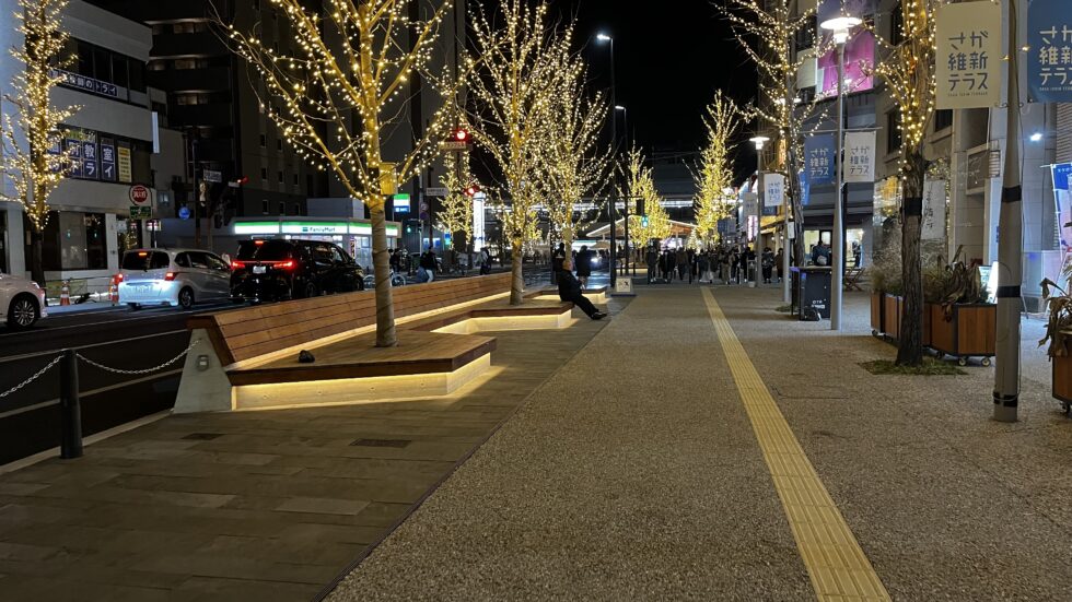 佐賀駅前再整備による歩道、交差点、公園の電気設備設計 イルミネーションなどのイベント用電源も確保